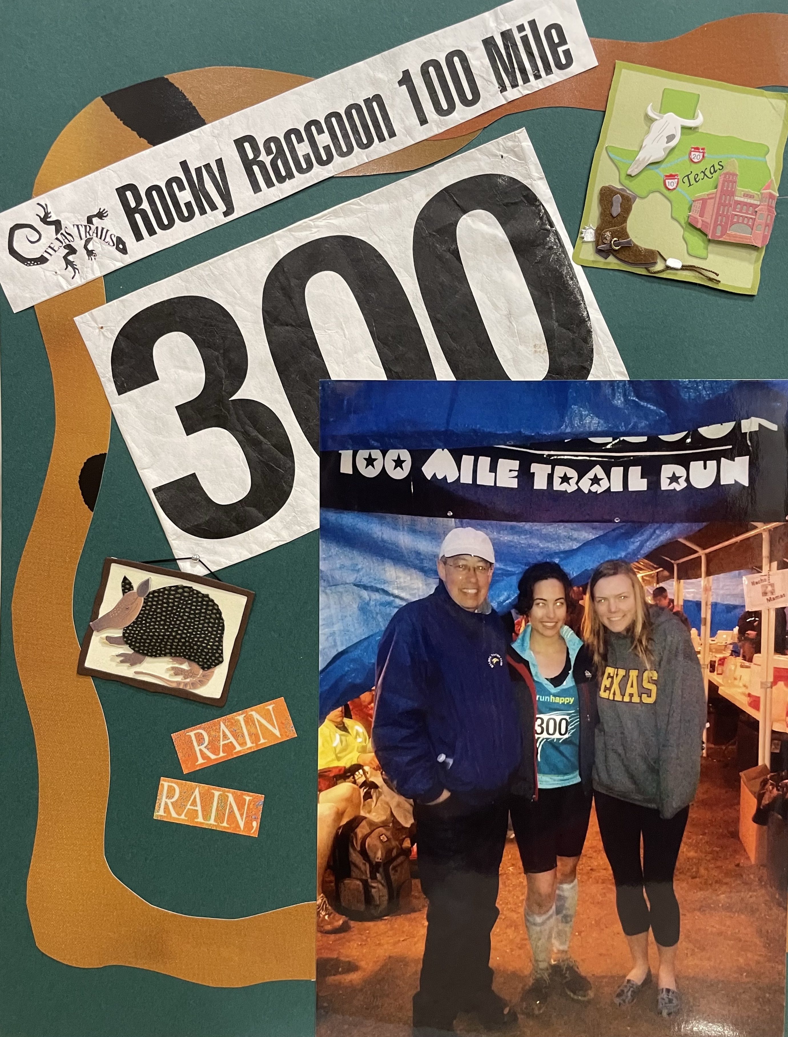 The race I ran was Rocky Raccoon, a five-lap race in Huntsville, Texas. You can see the results here. I finished in 24:58:28. Only 43% of the 415 runners finished. (Does anyone have updated stats on this?)