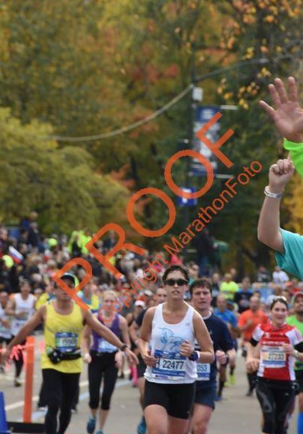 I found a really fast runner – look how low her bib number is! My friend Jessie from Wharton, who used to work for NYRR, got to start with the elite athletes