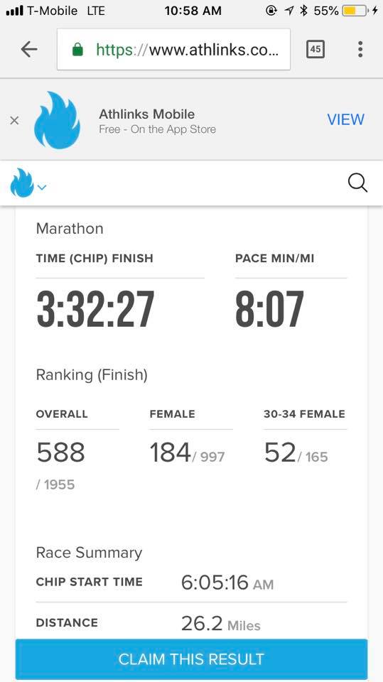 I blasted through the finish just ahead of the 3:35 pace group, securing my PR.