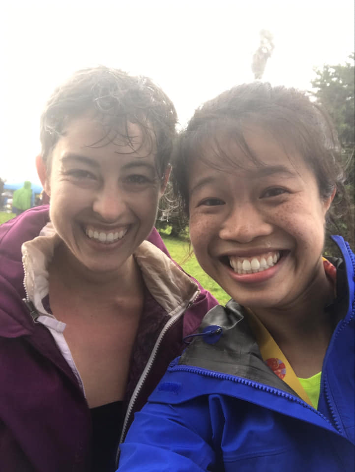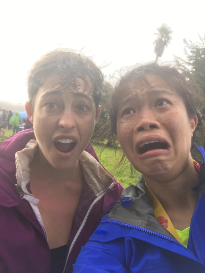 Around mile 10 or 12, I found Cyndi. She has a super fast base pace – faster than me for sure. She likes to take breaks at aid stations though, so it often evens out. She was a lap or two behind me, but we fell into pace together for a solid eight or nine miles. It was awesome to get to chat with her and catch up on life. Alex, her boyfriend, who also ran Burning Man 50k, came to cheer us on for one lap – it was awesome to see him on the course. It started raining quite a bit during the stretch Cyndi and I ran together – we were drenched for a few laps!