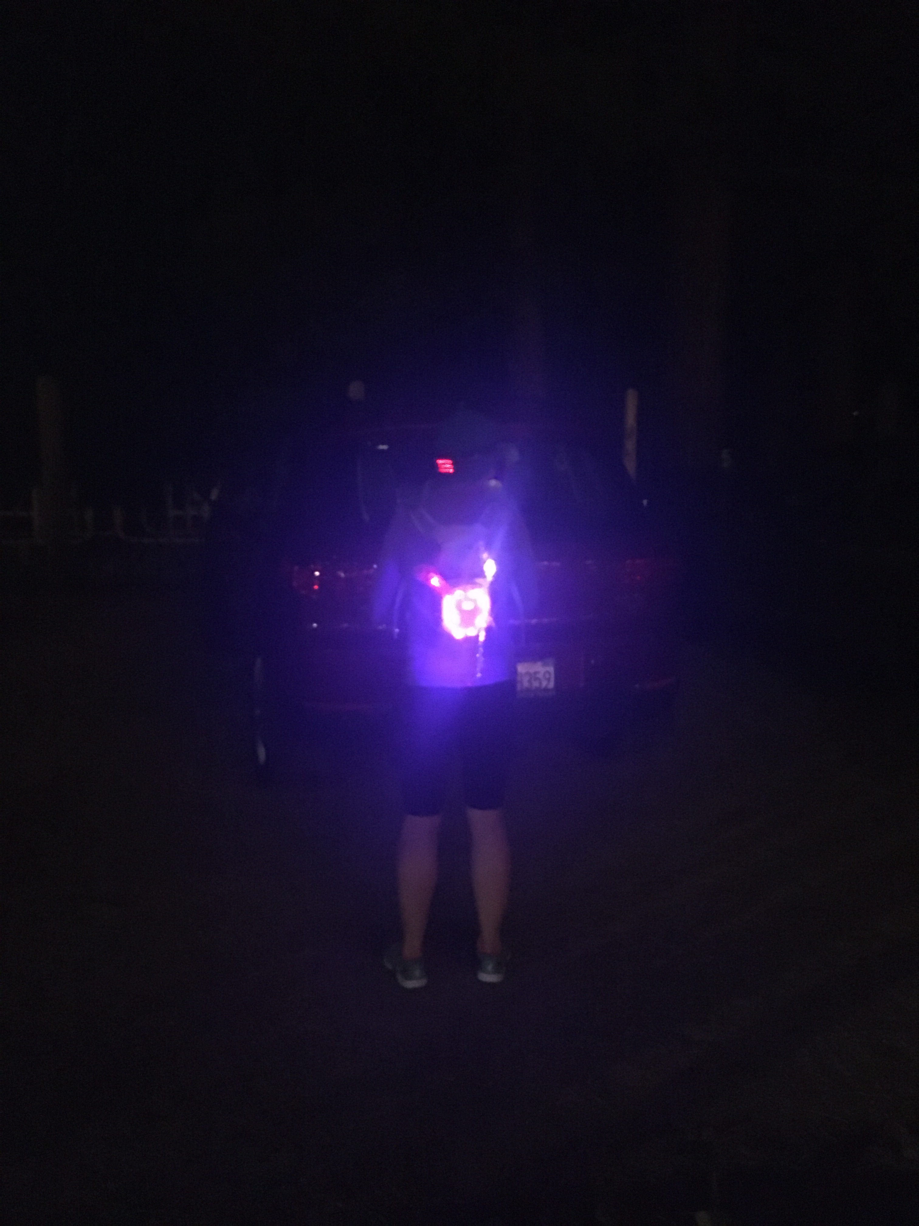 Only about 8-10 runners were starting at 9pm – a bunch had started earlier – so it was a very small start line. Les had a shotgun, and at 9pm, he fired it – and we started running.
