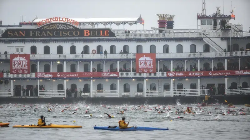 The race is a fairly famous olympic-esque distance triathlon. It’s loosely organized around the myth of Alcatraz Prison, which is now-defunct prison on a notoriously-difficult-to-escape-from island in the San Francisco Bay. The island has been made famous by movies such as the eponymous Escape from Alcatraz and possibly slightly more renowned The Rock.