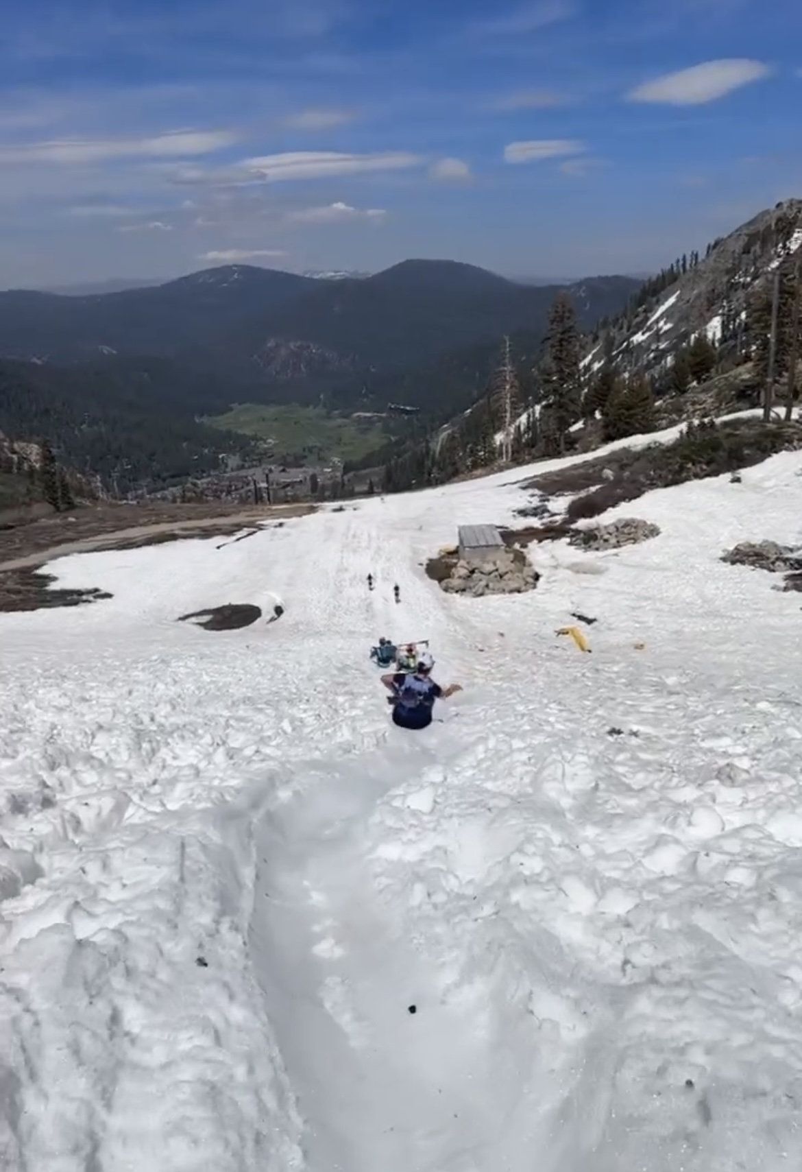 Two guys brought plastic bags to sit on, like sleds, for this part – they were FLYING down the hill.