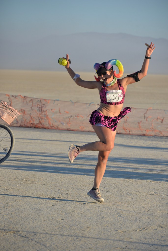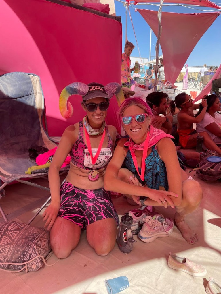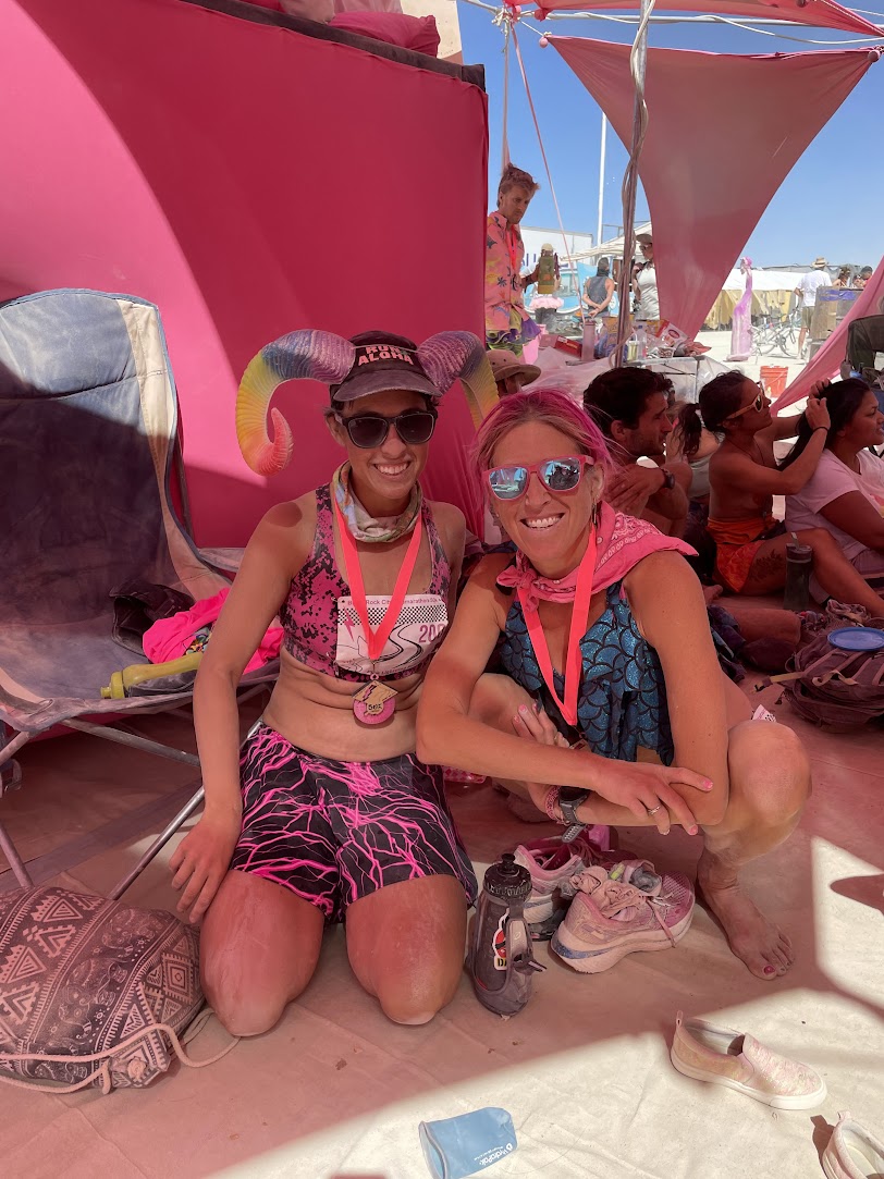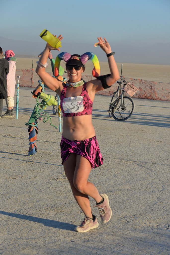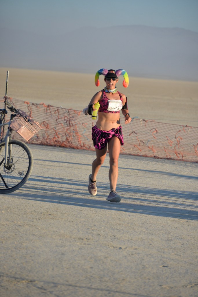 I also camped with Pink Lightning this year – they (we?) are the group who put on the event. It was great to get to hang out with runners, friends, and runners who are friends, the whole week – not just during the race itself. I helped out at other Pink Lightning events, supported course marking / gate setup, built a bunch of the camp, and tried not to mess up on-playa race registration too much.