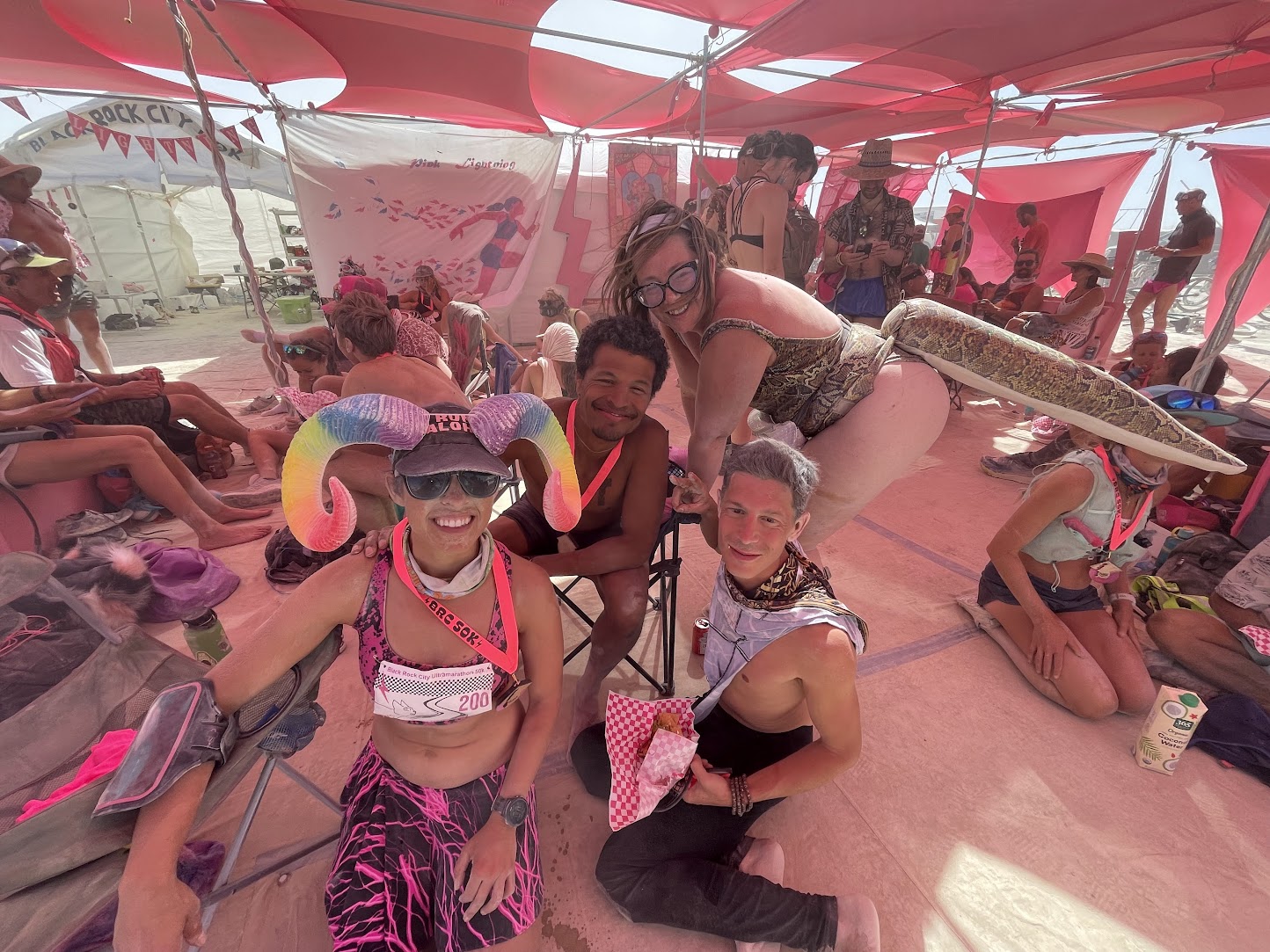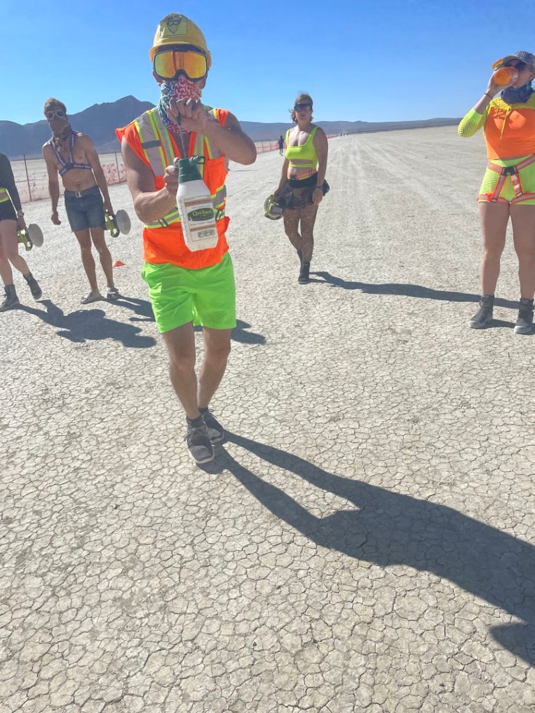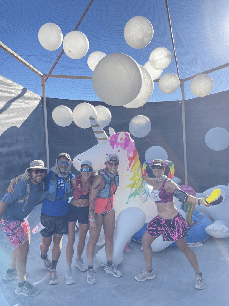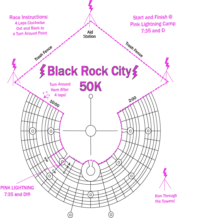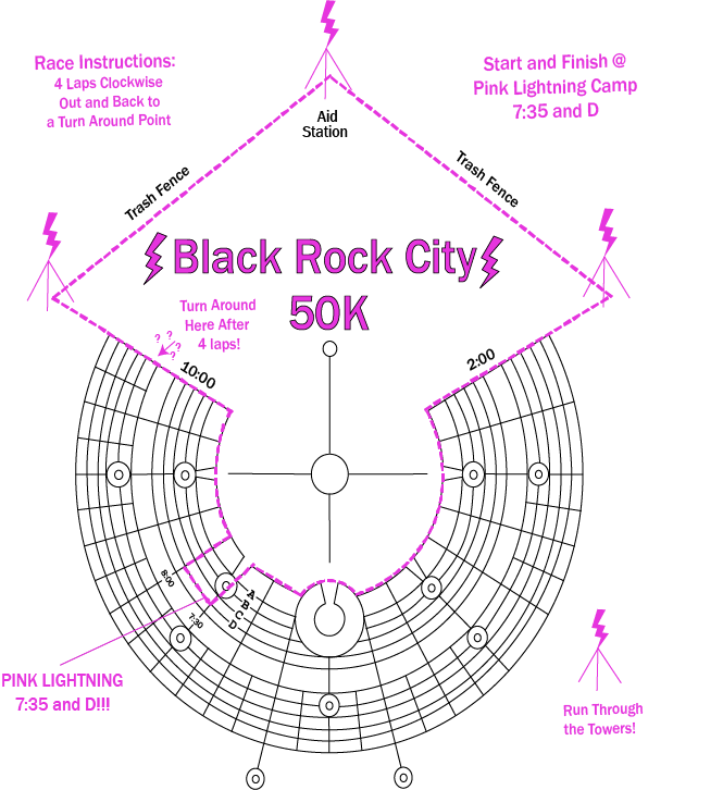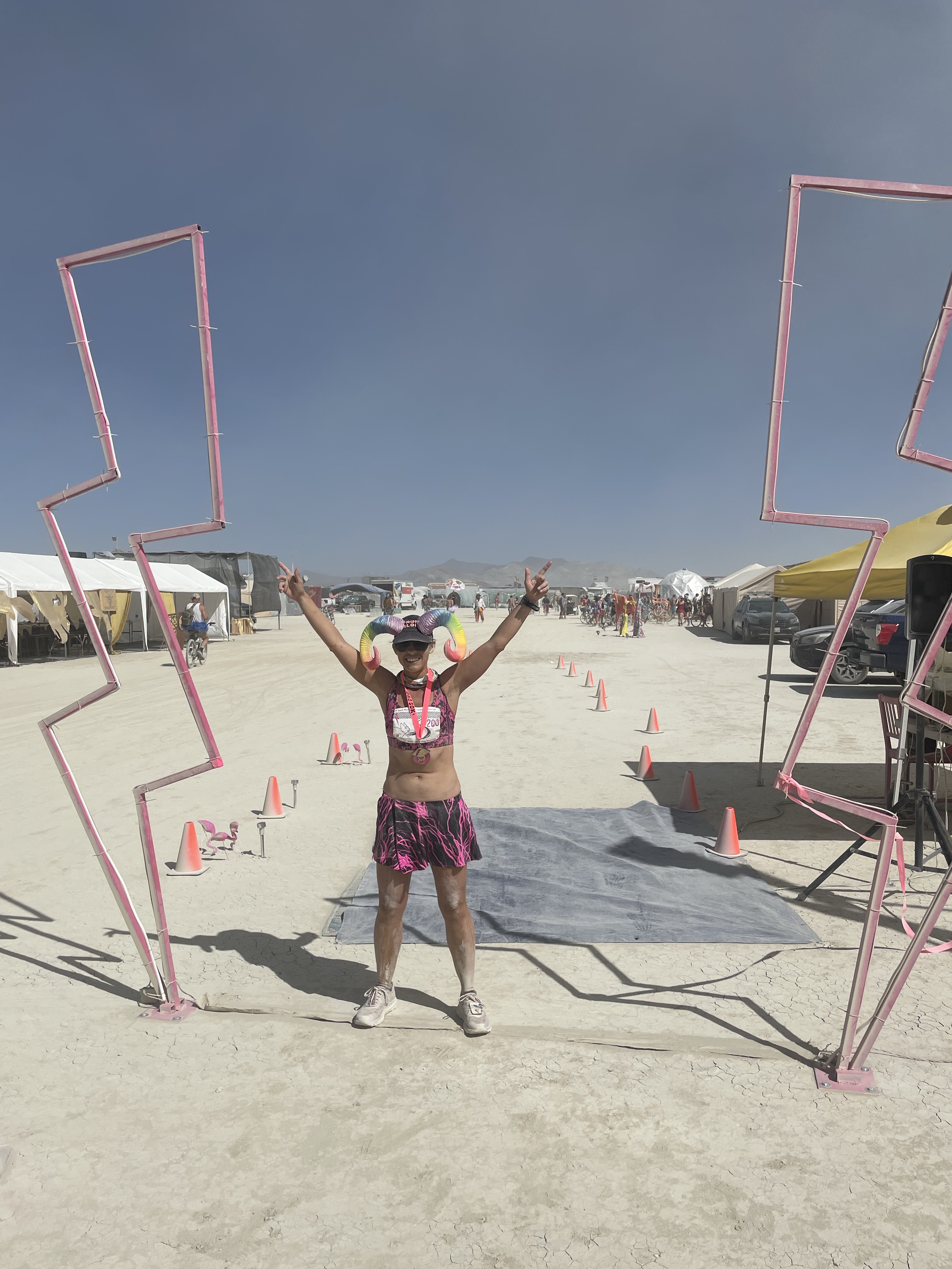I also camped with Pink Lightning this year – they (we?) are the group who put on the event. It was great to get to hang out with runners, friends, and runners who are friends, the whole week – not just during the race itself. I helped out at other Pink Lightning events, supported course marking / gate setup, built a bunch of the camp, and tried not to mess up on-playa race registration too much.