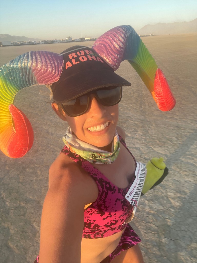 This was my 5th year running the Burning Man Ultramarathon 50k (6th time if you count the virtual one). The race takes place (as the name suggests) at Burning Man. This race happens on Tuesday – e.g. significantly before the rains hit – so we had dry and flat running conditions.