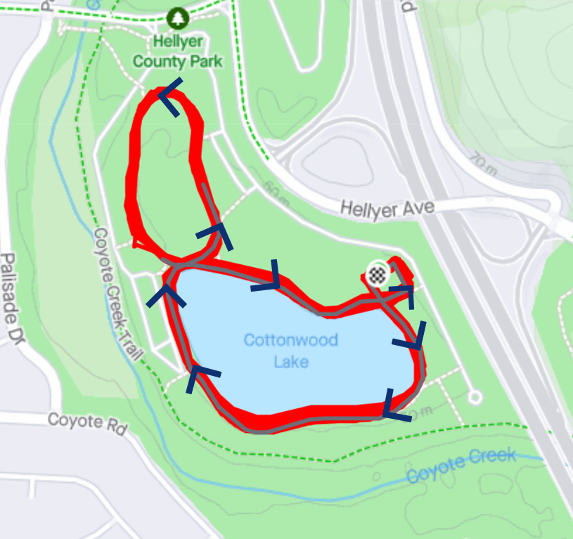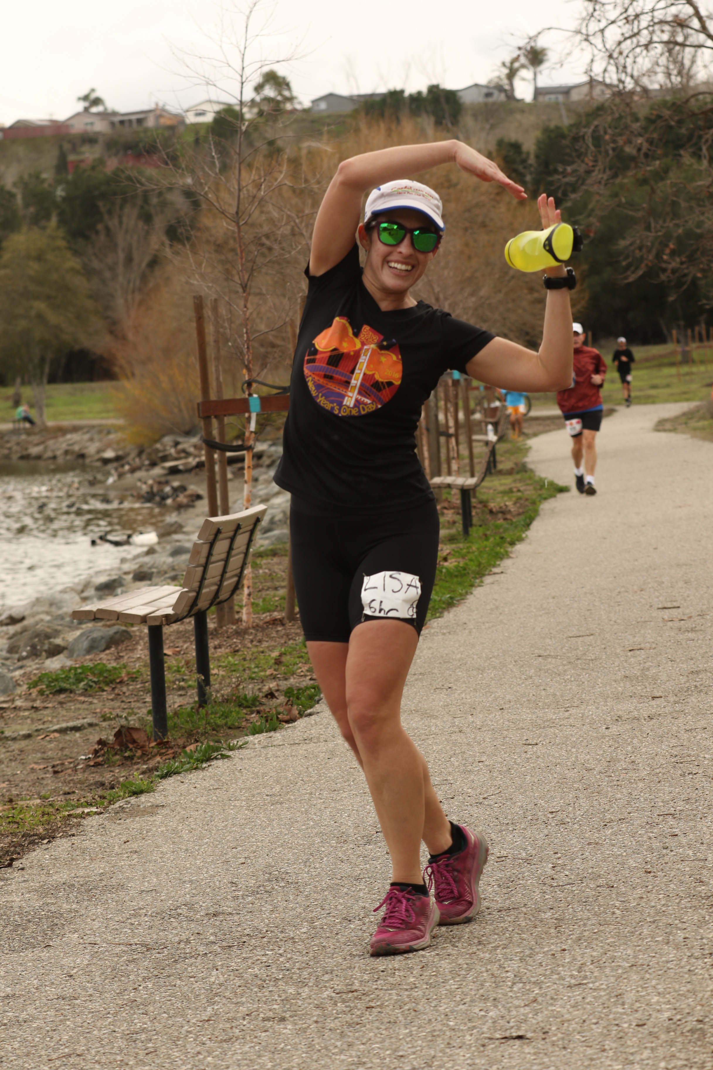 The new course is actually pretty great. The prior course was a mile around Crissy Field, which is obviously an iconic location, but now does not allow overnight events. The new course is at Hellyer Park, in San Jose, around a lake. It is 95% paved, which is a bit tough on the body, but the figure-8 shape made it more fun because you could see other runners at the crossings. Checking out the birds on the lake was fun too.