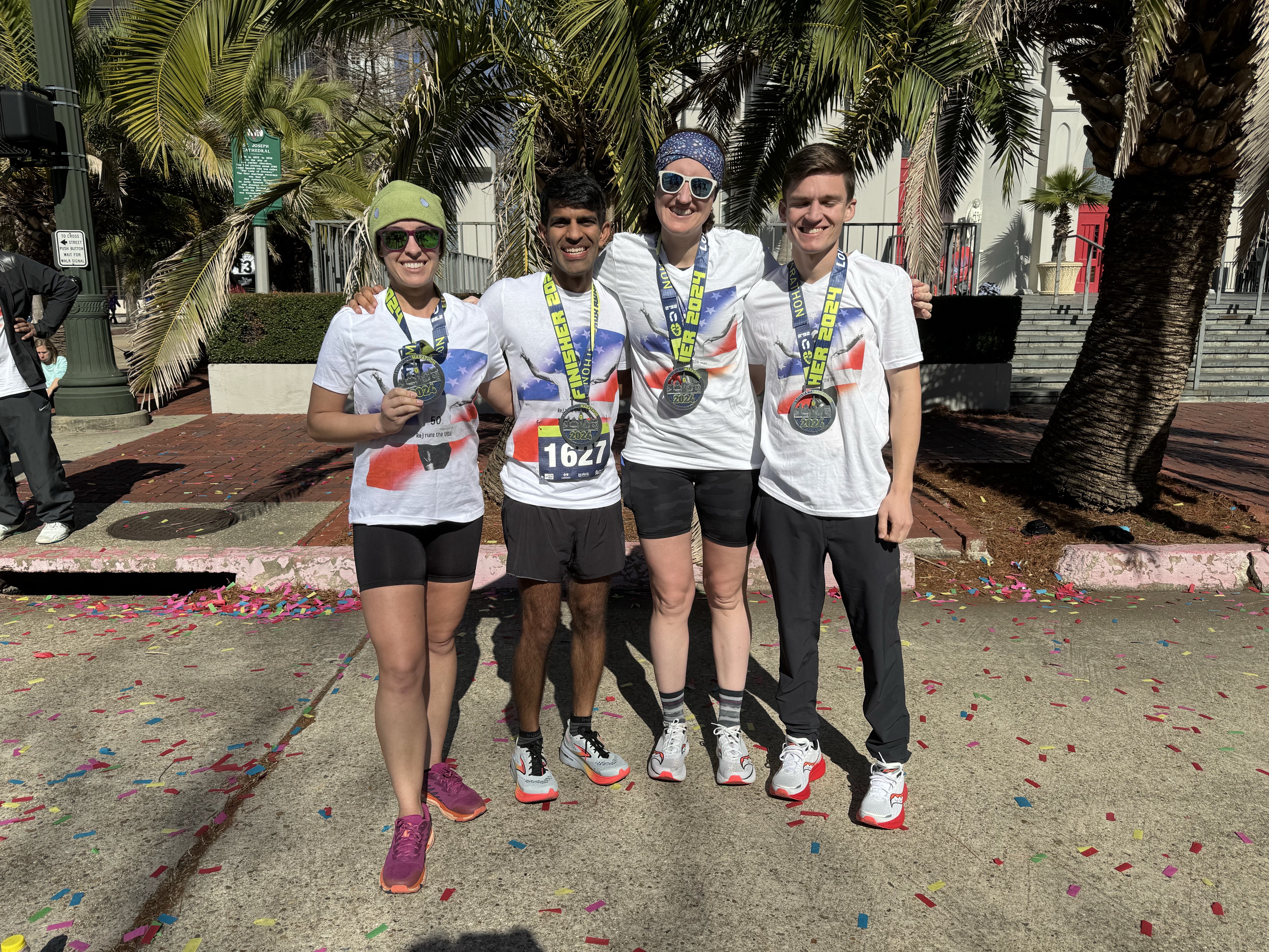 Last weekend, I ran Louisiana Marathon, finishing just under 4 hours (3:58.45). The race weekend was a celebration for my dear friend Raj, from business school, for whom this was his 50th state marathon. Despite both of us running a lot and and having run together (sometimes … he’s very fast), we’d only done one race together before this.