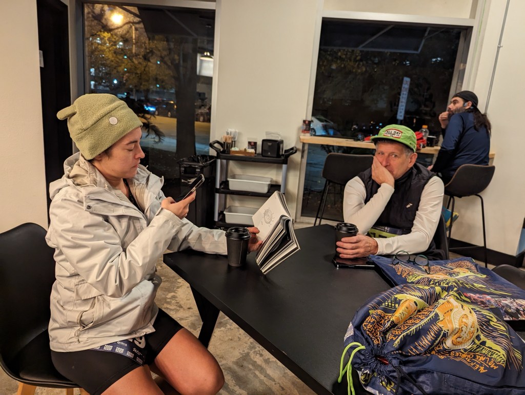 The race was actually in Baton Rouge, about 80 miles from where we were all staying in New Orleans. We drove 80 miles to the start. I was, as usual, quite nervous about parking and morning logistics, so we arrived probably earlier than necessary, but got a prime parking spot 2 blocks from start/finish and 30 feet from a coffee shop (warm, and with a bathroom) that we convened in.